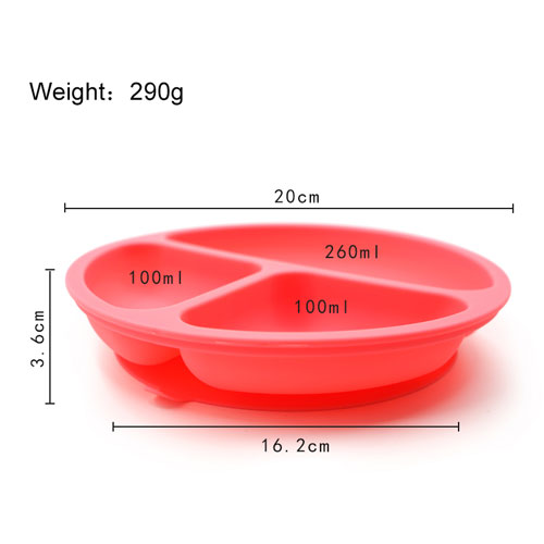 硅胶餐盘的材料是采用硅胶制成,质地柔软、抗撕裂、手感好、尺寸可根据客人的要(yào)求 、颜色根据客人的要求定做、通过了FDA,EEC,LFGB等国际认证,安全放心。