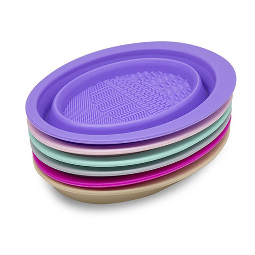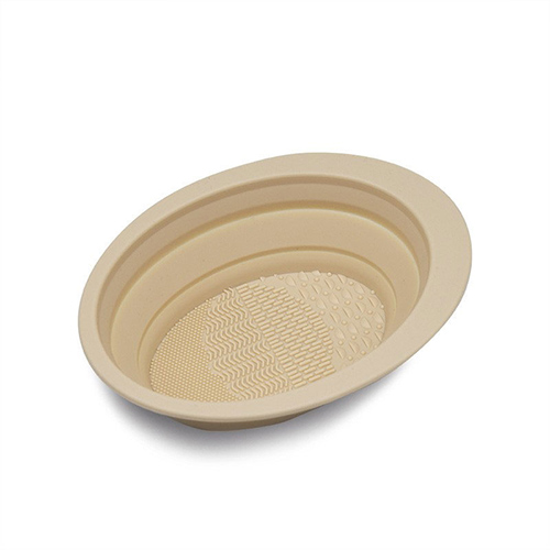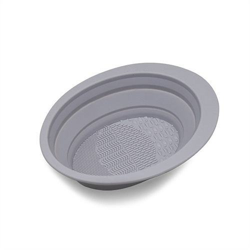 硅胶材质的碗,上面有三种不同的凸起,能照顾到每种(zhǒng)化妆刷。