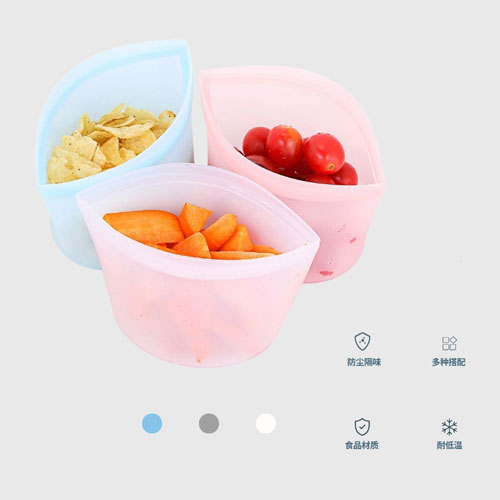 矽(guī)膠保鮮袋(dài)采用食(shí)品級矽膠製成,無毒無味,耐高溫,符合美國FDA標準,環保無公害,使用壽命長,質地柔軟,抗撕裂,手感好,不(bú)怕摔不怕壓,攜帶方便,適用於微波爐、烤箱、冰箱、冰櫃、洗碗機,獨有的可(kě)折疊創新設計,收納時節省空間,更加低碳,可循(xún)環使用。